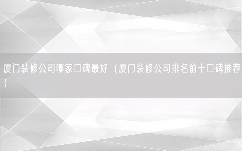 廈門十大放心裝修公司難不難找呀廈門的裝修公司是沒有排名的,畢竟這么多廈門家裝修公司,每家都有自己的優(yōu)勢(shì)與特色,以下的公司都是可以選擇的。