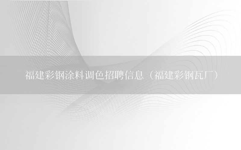 本篇文章給大家談?wù)劯=ú输撏苛险{(diào)色招聘信息,以及福建彩鋼瓦廠對(duì)應(yīng)的知識(shí)點(diǎn),希望對(duì)各位有所幫助,不要忘了收***本站喔。 今天給各位分享福建彩鋼涂料調(diào)色招聘信息的知識(shí),其中也會(huì)對(duì)福建彩鋼瓦廠進(jìn)行解釋,如果能碰巧解決***現(xiàn)在面臨的問(wèn)題,別忘了關(guān)注本站,現(xiàn)在開(kāi)始吧!